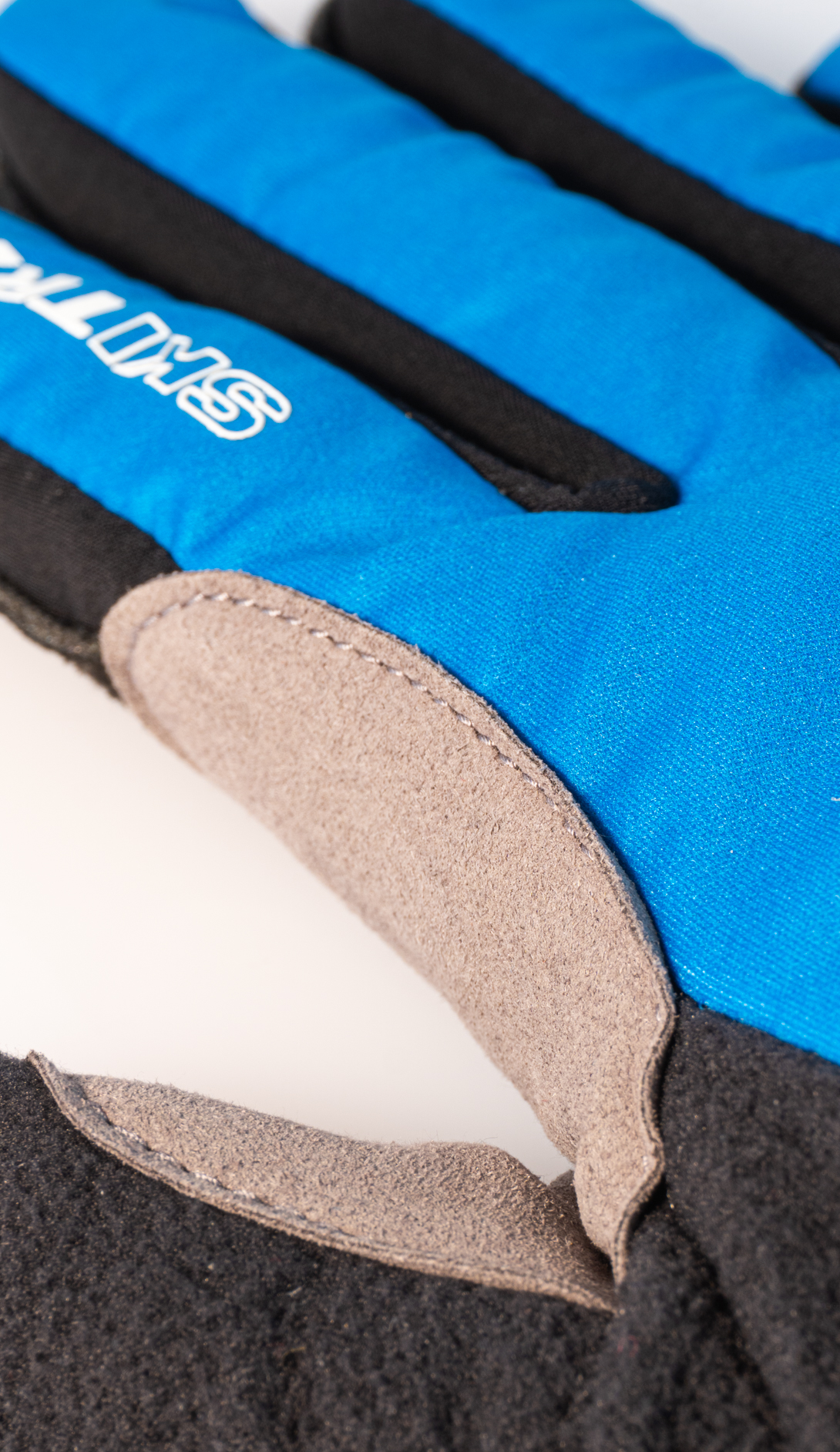 Outside stitching on fingers for better fit + suede reinforcement patch