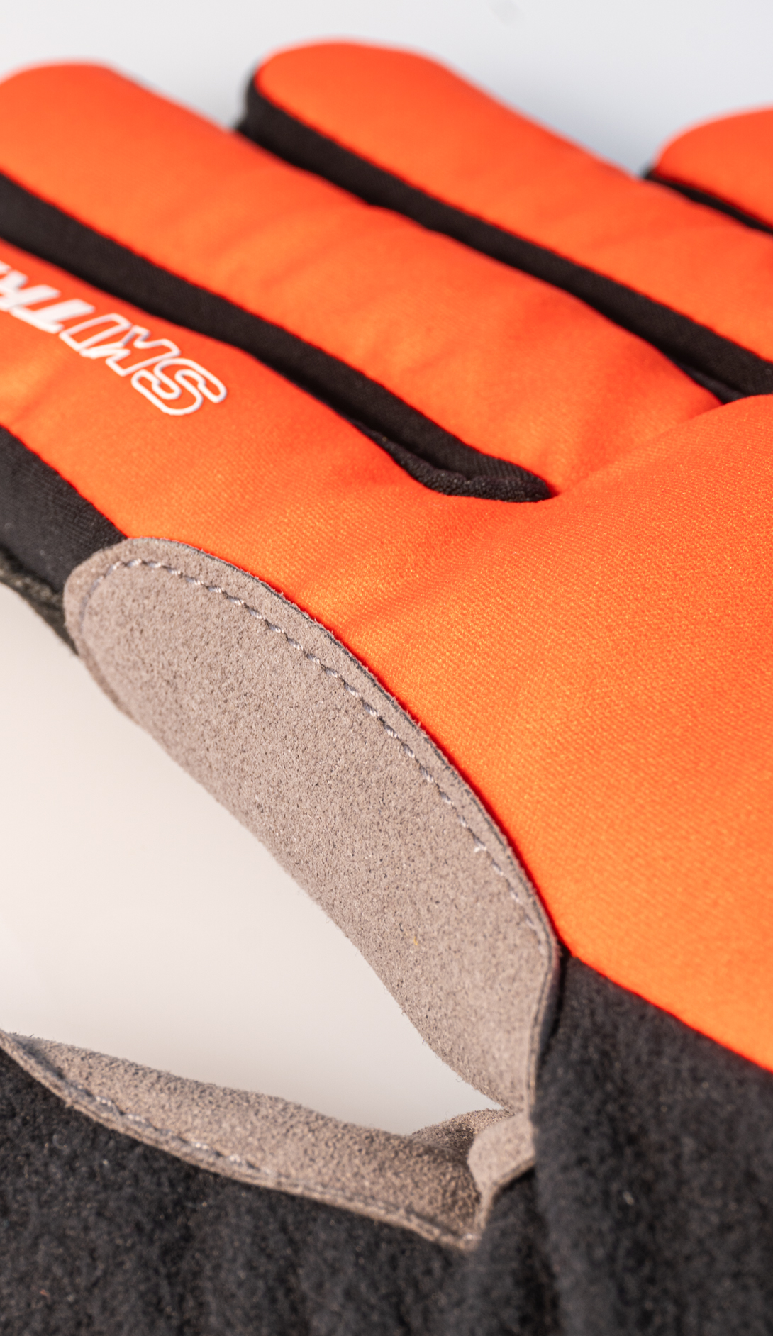 Outside stitching on fingers for better fit + suede reinforcement patch